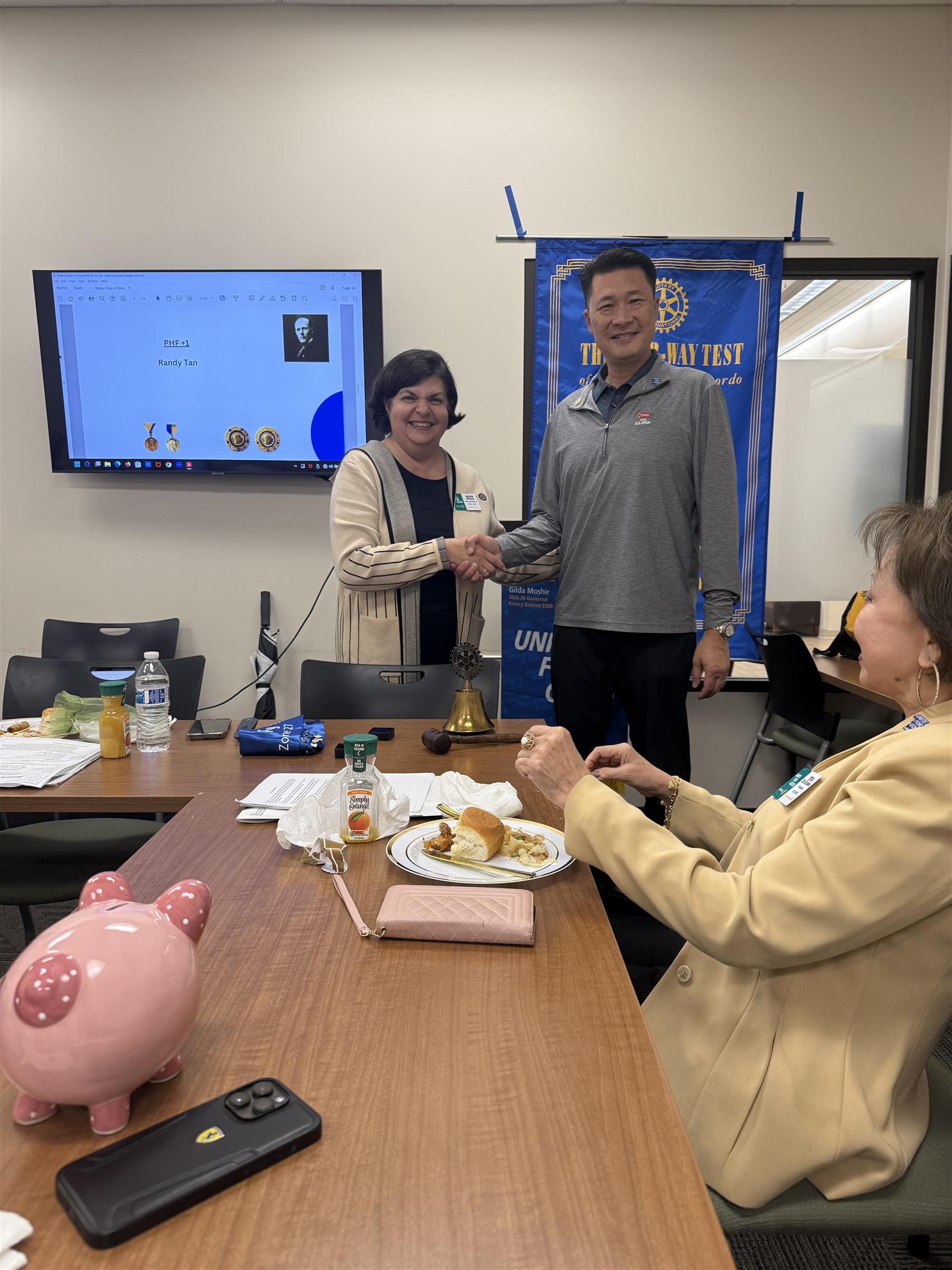 In 2021, Rotarians Randy Tan and Shane Jarabelo became Paul Harris Fellows. At the Installation of Officers during the Club's dinner meeting on Saturday, June 26, 2021, Outgoing Club President Randy Tan passes the gavel to Incoming Club President Shane Jarabelo.